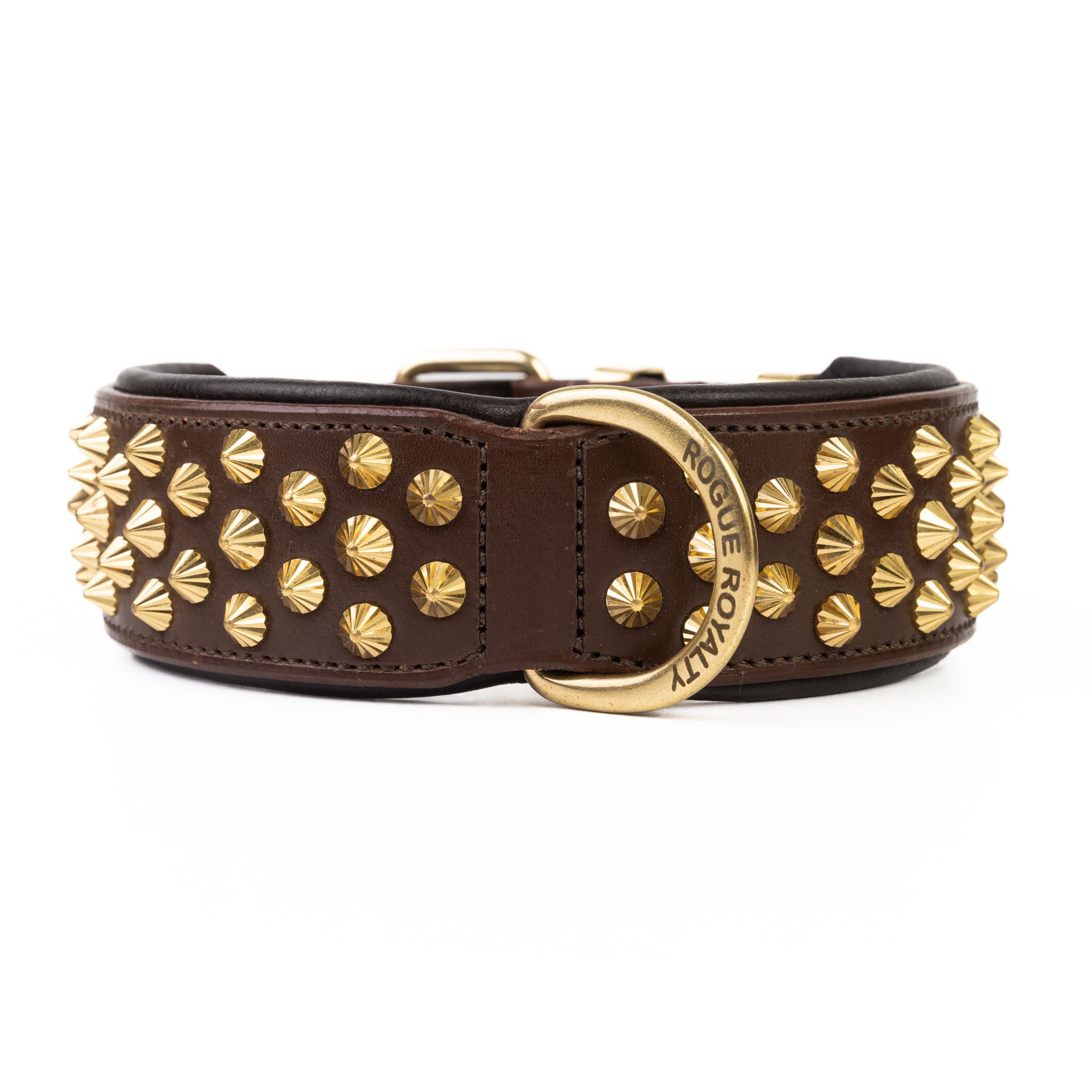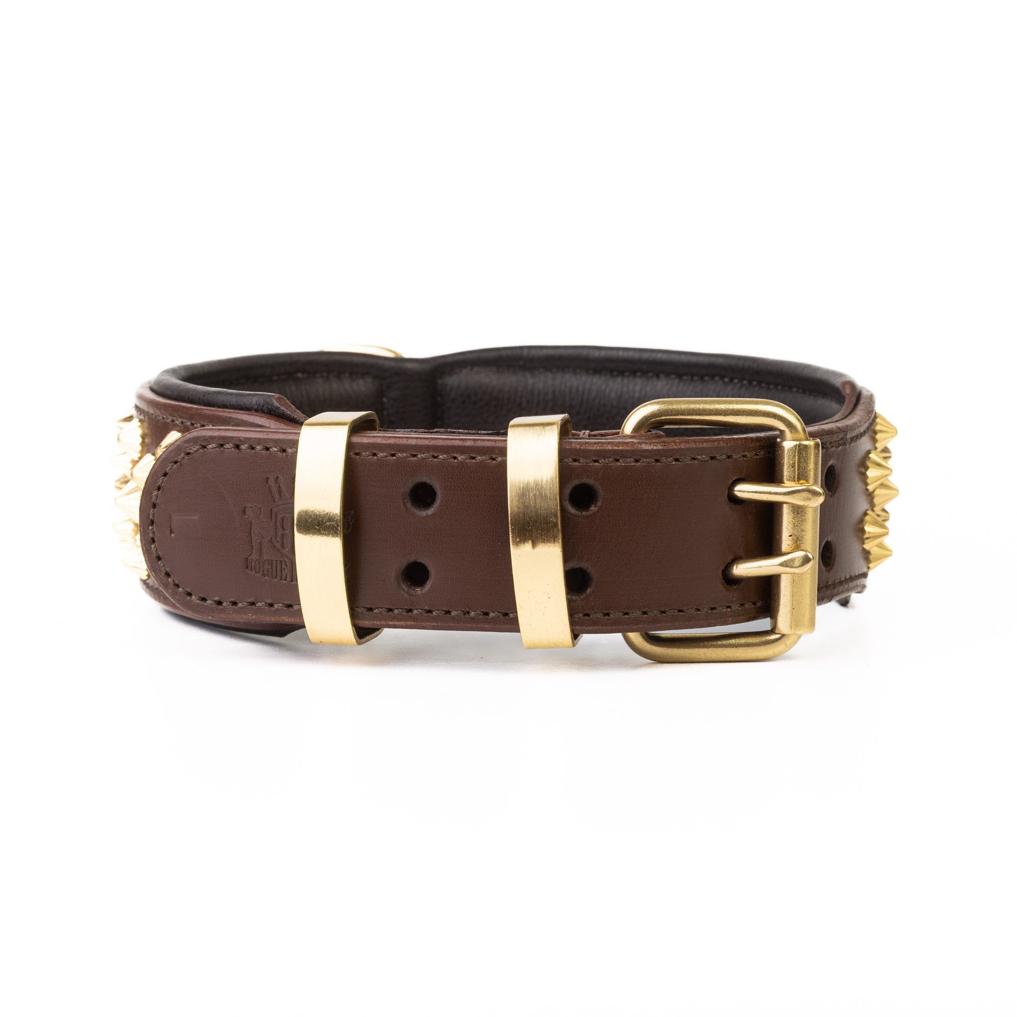The Ruthless collar in brown and brass strikes the perfect balance between rugged charm and timeless sophistication. Handcrafted from premium full-grain leather, it boasts a deep, earthy tone that only grows richer with age. Solid brass studs and hardware are polished to a refined finish, adding weight and presence without sacrificing style. With its double-layered construction and reinforced stitching, this collar is designed not just to look the part, but to endure a lifetime of adventures — a true statement piece for the dog who demands both strength and style.