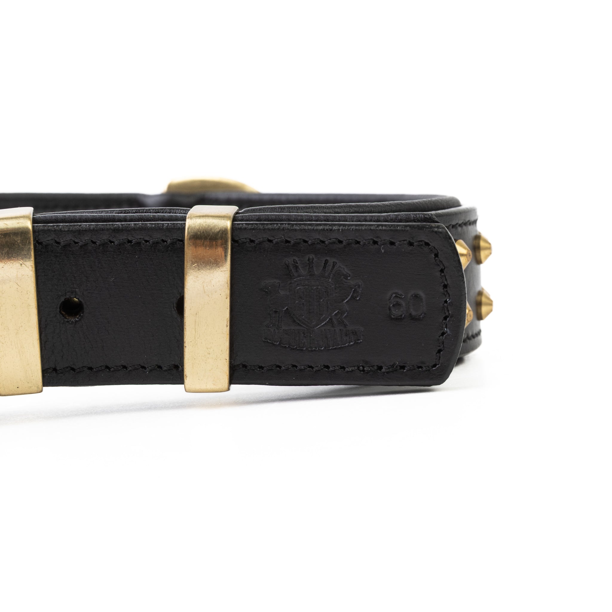 Hand Made Leather Dog Collar- RuffNeck Black & Brass (Regular Fit)