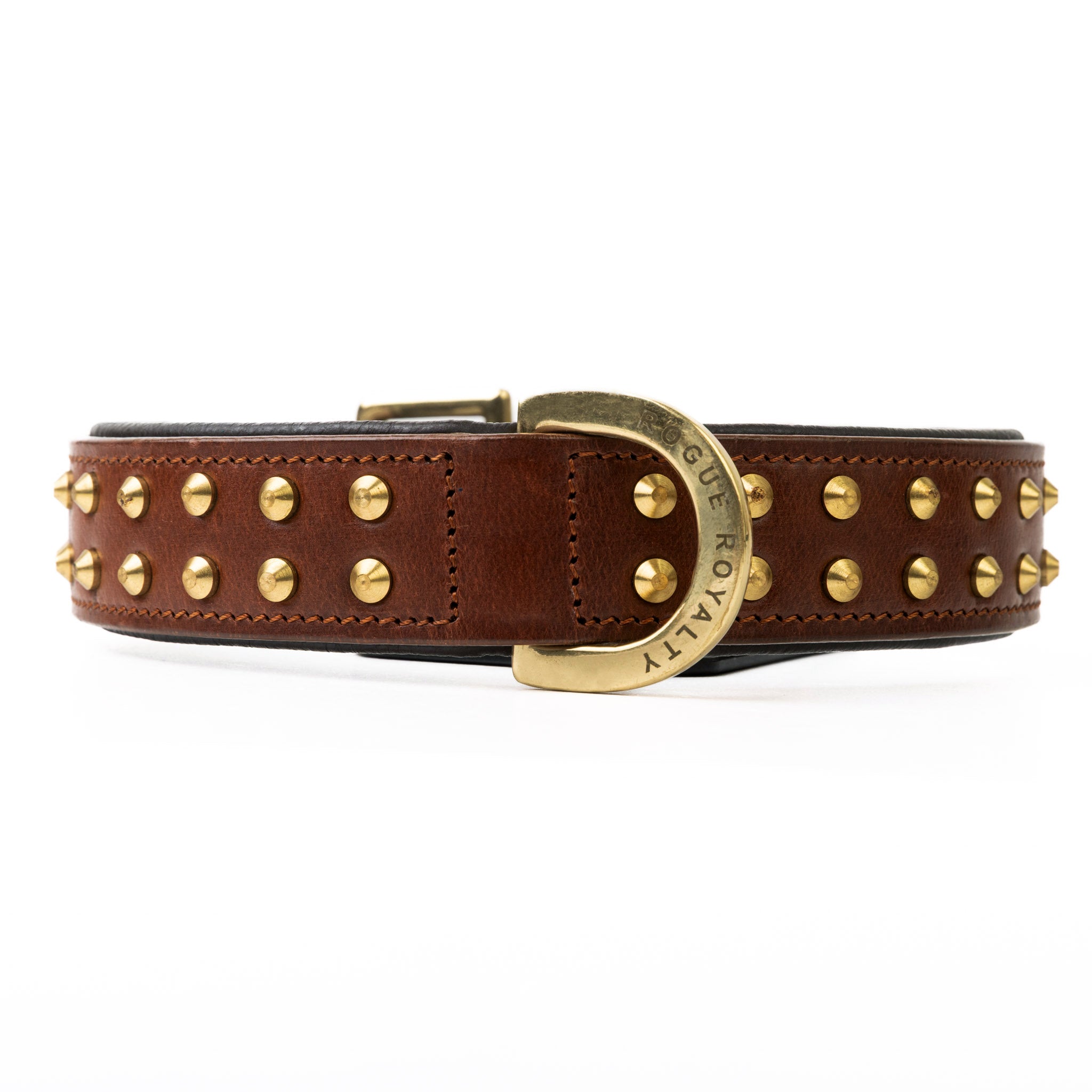Hand Made Leather Dog Collar- RuffNeck Brown & Brass (Regular Fit)