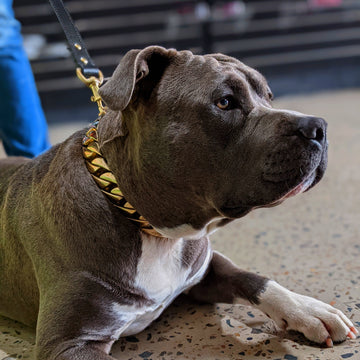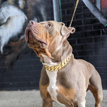 When sized correctly, our gold chains sit smoothly around the neck without pinching. They are not choke or correction collars and are designed for comfort, balance, and everyday wear.